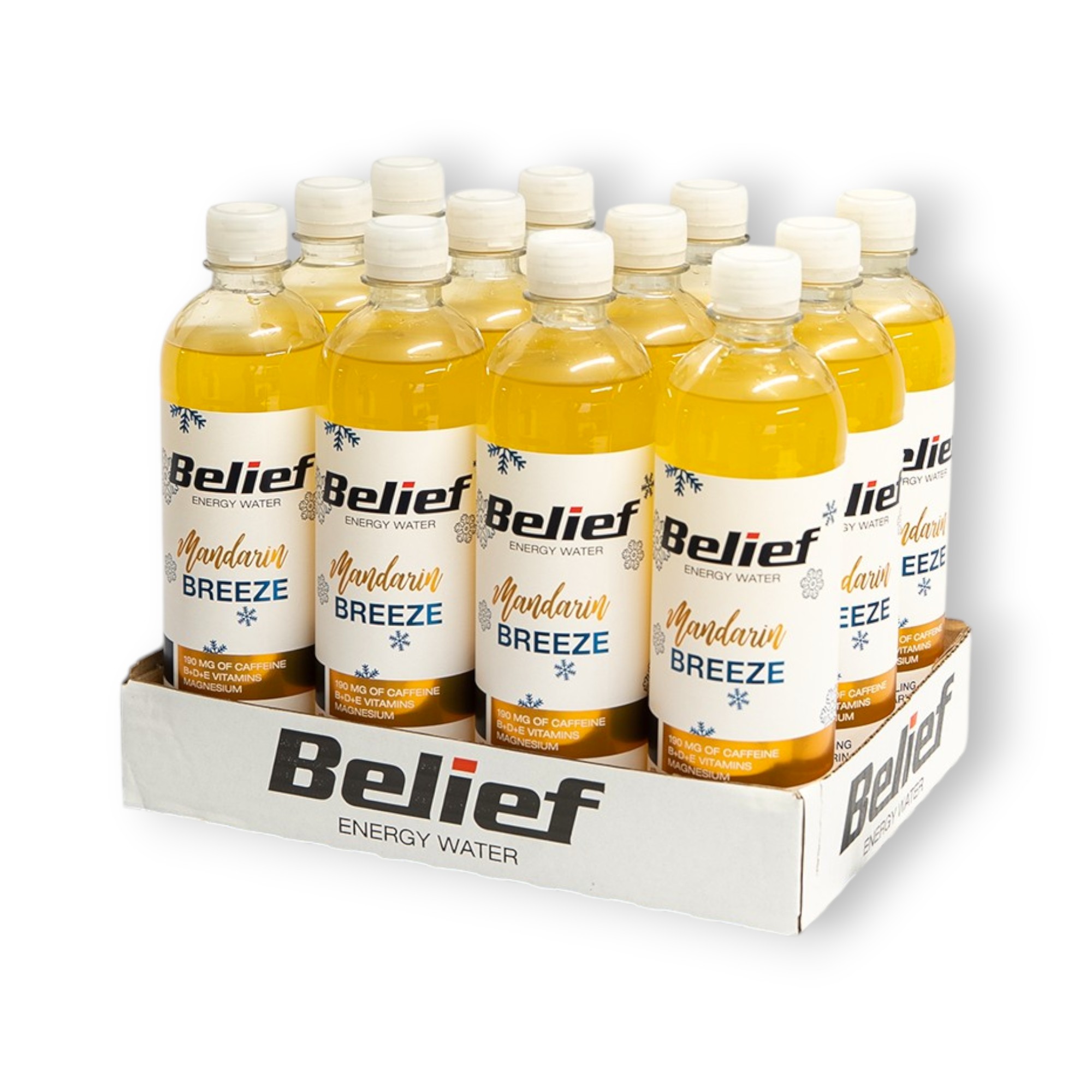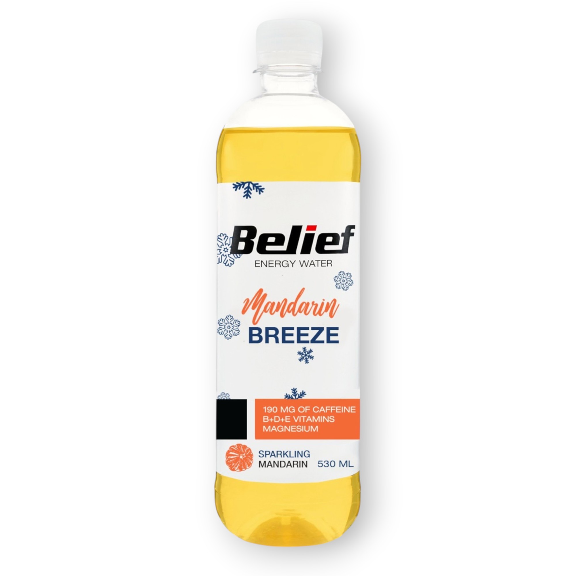 Belief Energy Water – Mandariinimaitseline madala kalorsusega jook. Kõrge kofeiinisisaldus (36mg/100ml). Ei ole soovitatav lastele, rasedatele ega rinnaga toitvatele naistele. Tarbida mõõdukalt.